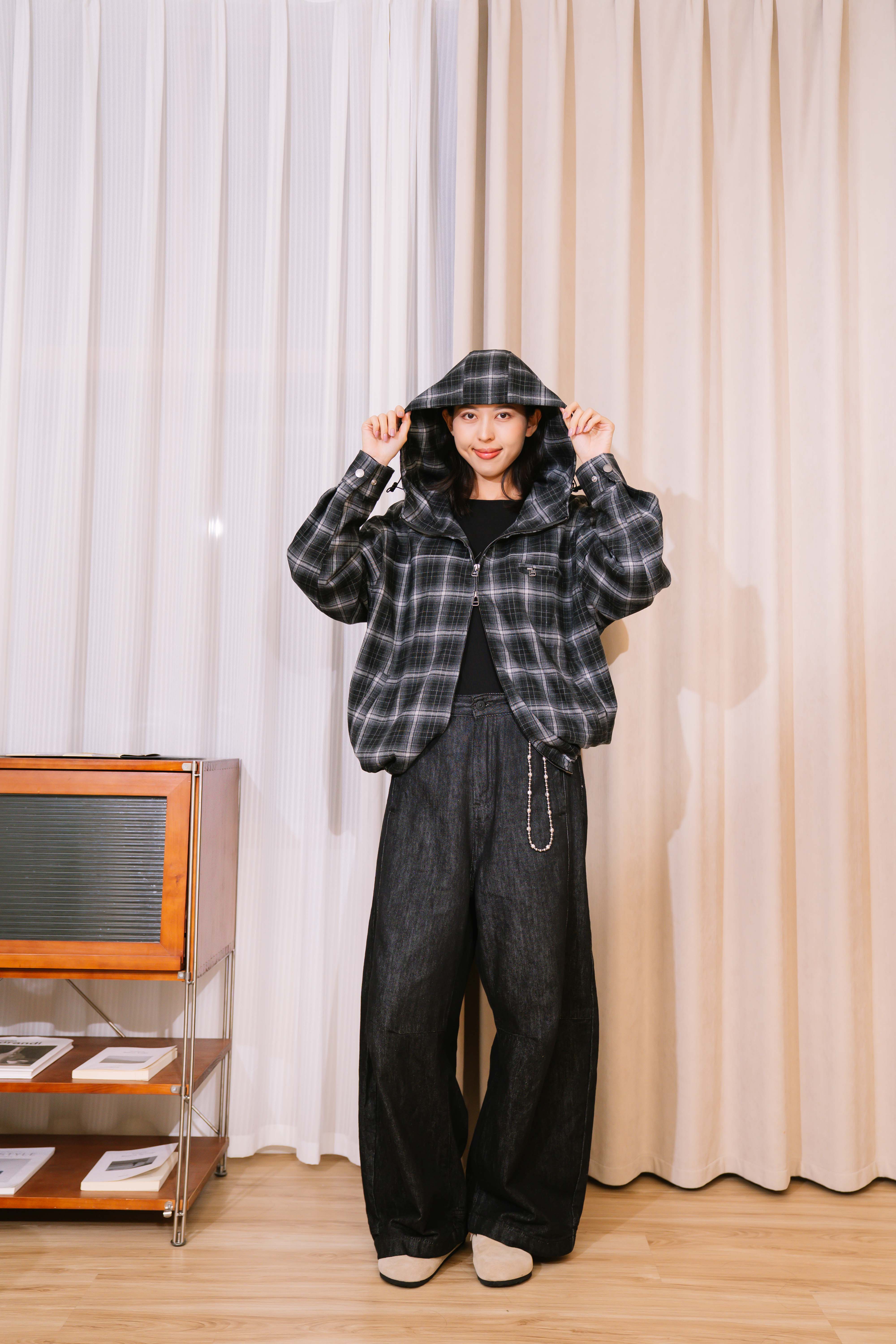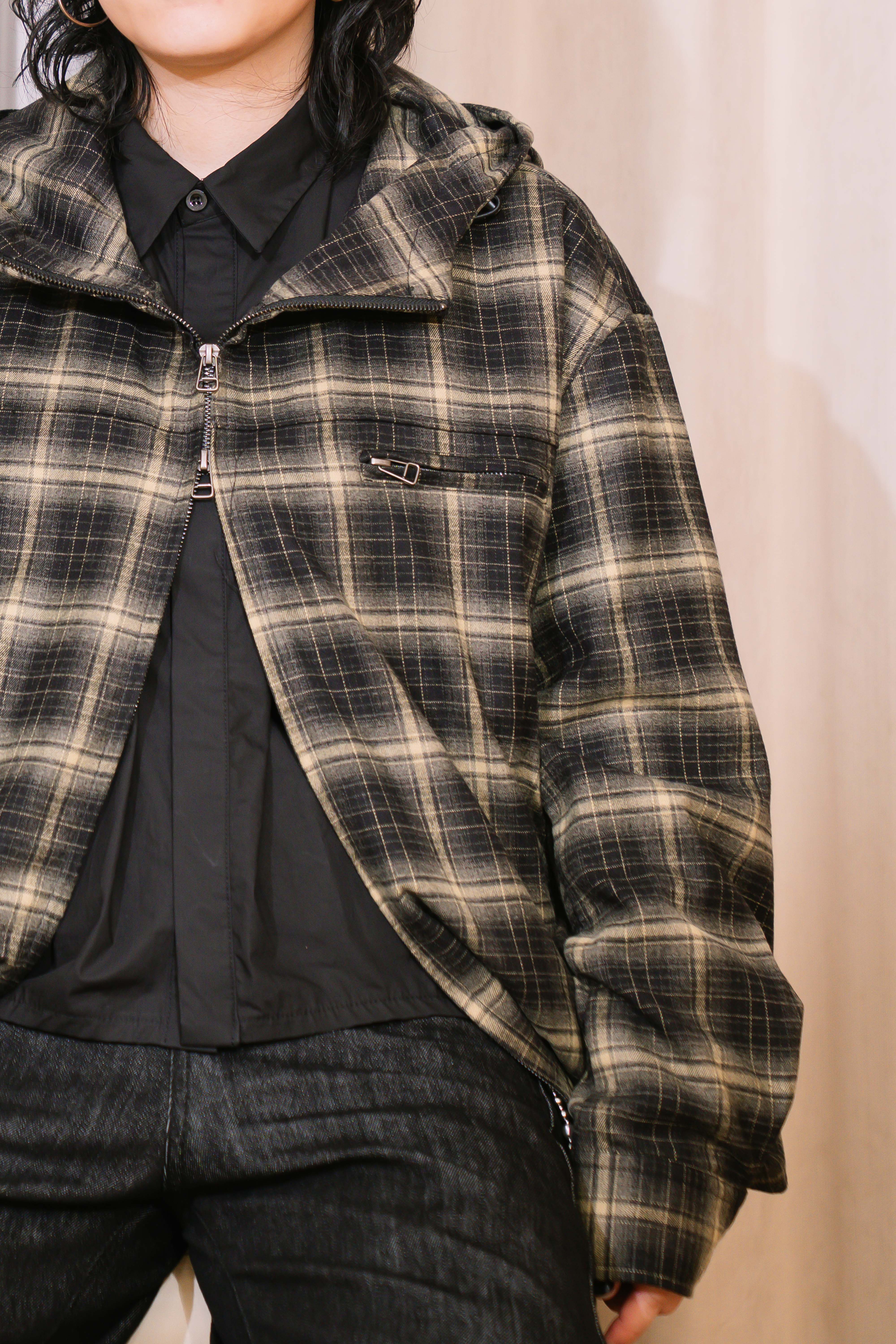 漸層格紋短寬外套 FW36